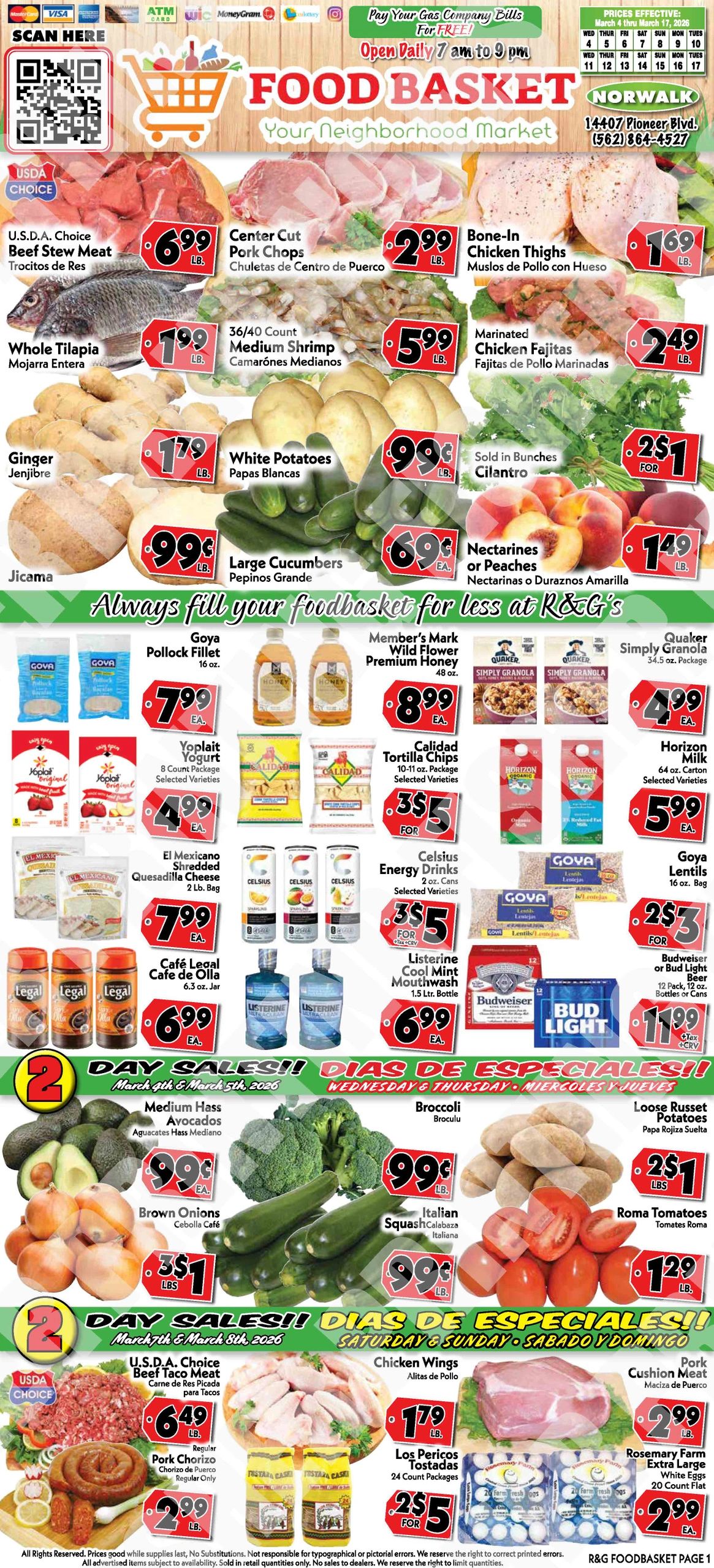 We carry general products as well as ethnic groceries such as hispanic, Central American, Asian and American.